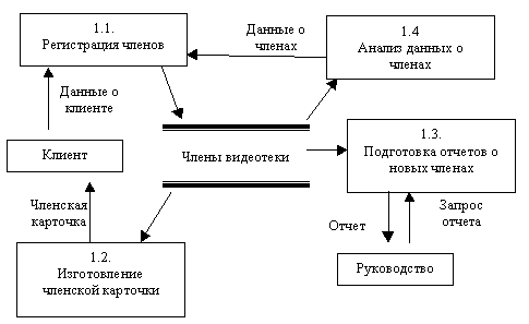 з) в противном случае - обновить информацию о клиенте в накопителе "Члены видеотеки" и перейти к процессу 1.2.