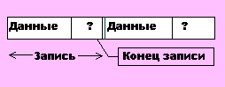 Конец каждой записи помечается специальным символом. Например, в MS DOS текстовые файлы состоят из записей, каждая из которых кончается символом “конец строки”. |