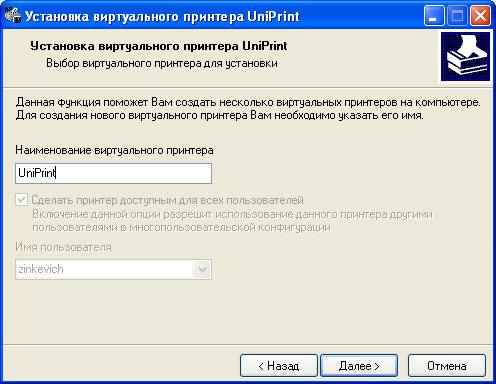 Установку виртуального принтера проводим посредством нажатия кнопки «Далее» в следующих окнах