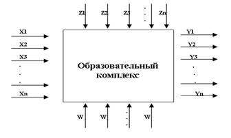Анализируя составляющие структуру системы моделей, пришли к выводу, что МД и ГОСО обладают наибольшей сложностью, а КХ является звеном, связывающим между собой элементы модели. Базовой моделью является КХ специалиста, которая разрабатывается из профессиограммы и формирует модель деятельности. Поэтому для составления модели определили основные факторы влияющие предлагаемой системе непрерывного образования и на их конечное формирование ( рисунок 4). Например, на вход системы из среды поступают: множество целей и ограничений как Z = {Zk} регулируемые факторы и множество ресурсов X = {Xj} водные факторы. Выходом из системы является множество конечных результатов (специалистов разного уровня) ориентированных на удовлетворение потребностей внешней среды Y= {Yi} качественные показатели готового специалиста.