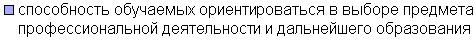 способность обучаемых ориентироваться в выборе предмета профессиональной деятельности и дальнейшего образования | 29% | 39% | 34% |