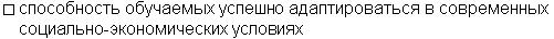 способность обучаемых успешно адаптироваться в современных социальноэкономических условиях | 21% | 14% | 17,5% |