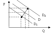 Повышение спроса вызывает сдвиг кривой вправо, а сокращение спроса - сдвиг кривой влево, что отражает, соответственно, увеличение или уменьшение объема спроса при всех возможных ценах.