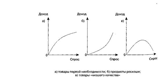 По мере роста доходов спрос на эти товары сначала растет, а потом, начиная с некоторого уровня доходов, снижается.