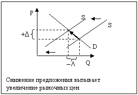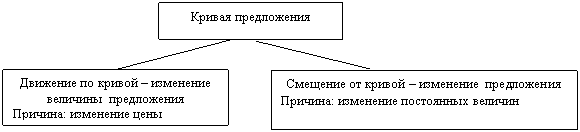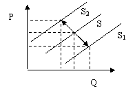 Изменение предложения - сдвиг кривой предложения в ответ на изменение любого из факторов, влияющих на объем предложения, кроме цены данного товара. Важнейшими среди них являются: издержки производства, которые определяются технологией и ценами на ресурсы, налоги и дотации, цены на другие товары, ожидание изменения цен, число продавцов на рынке. Повышение предложения вызывает смещение кривой вправо, а сокращение предложения - сдвиг влево, что отражает, соответственно, увеличение и уменьшение объема предложения при всех возможных ценах.
