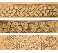 Плосковыемчатая(плоскорельефная)резьба бывает с заоваленным контуром (см. рис. 1), заоваленная резьба с подушечным фоном (см. рис. 2) и заоваленная резьба с подобранным фоном (см. рис. 3).