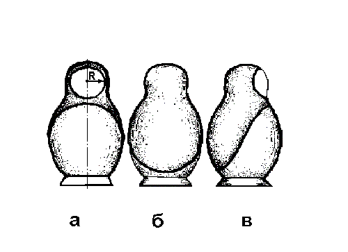 Верхний край платка нанесен, он совпадает с контуром лица. Нижний край платка закрывает шею спереди (рис. 1,а), почти всю спин (рис. 1,6), а сбоку линия нижнего края платка проводится примерно по диагонали (рис. 1,в).