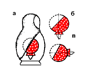 Контур рукава также удобно нанести с помощью циркуля. При этом часть круга размещается на «территории» платка, так как это показано рис. 2,а. Если рука опущена вниз, то манжеты и ладошки рисуются снизу, если рука согнута в локте сбоку, на линии радиуса окружности рукава (рис.2,б, в)