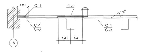 Непрерывное армирование (рис. 9). Армируем плиту одной сеткой, которая подбирается по усилиям в средних пролетах, а в крайних пролетах устанавливаем дополнительную сетку. По сортаменту подбираем сетку С-1 с площадью