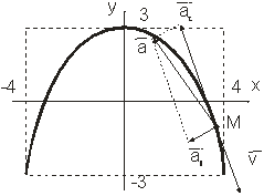 Поскольку точка описывает криволинейную траекторию, то её ускорение можно представить в виде векторной суммы двух составляющих