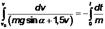 Уравнение (3.2) является линейным дифференциальным уравнением первого порядка с разделяющимися переменными. Представим производную от скорости как отношение дифференциалов функции и независимой переменной