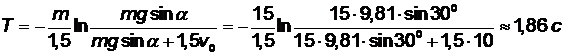1. По шероховатой наклонной плоскости, составляющей угол α = 30° с горизонтом, опускается без начальной скорости тело. Определить, в течение какого времени тело опустится на высоту h = 10 м по вертикали, если коэффициент трения скольжения f = 0,1.