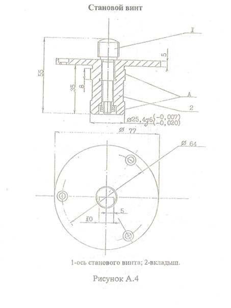 4.4 Допуск на разность диаметров рабочих поверхностей А втулки и вкладышей целика и станового винта должен быть не более 0,04мм.