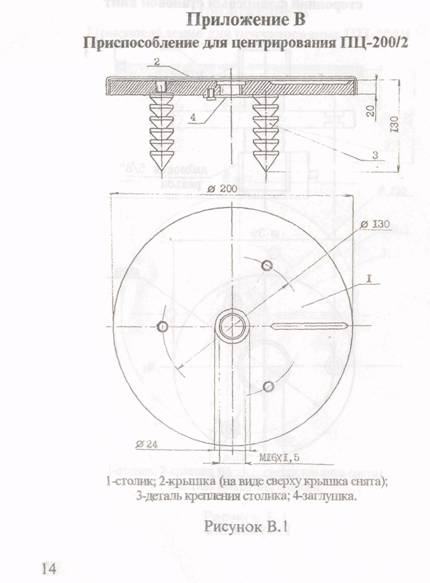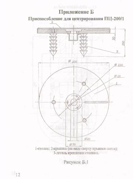 4.10 Для центрировочного приспособления ПЦ-200/2 отверстие в столике для закрепления становых винтов должно иметь резьбу Ml6x1,5.