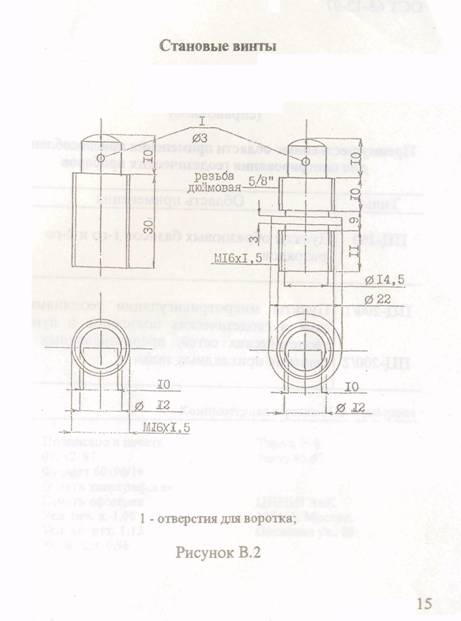 4.11 Становые винты для ПЦ-200/2 должны быть изготовлены с метрической резьбой Ml6x1,5 и с резьбой двух видов - метрической Ml6x1,5 и дюймовой 5/8" на одной цилиндрической поверхности.