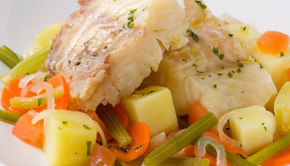 1 кг. - морской рыбы. 1 - луковица. 1 - пучок зелени. 5-6 - горошин черного перца. 2 ст. ложки муки. 2 ст. ложки маргарина. 1/2 дольки чеснока. 2 - помидора или томата-пюре. 6 - ст. ложек сливок. соль, перец Рыбу очистить, удалить голову, кожу, хребет и разделить на части. В 1,5 л. воды отварить головы, кожу и кости, добавив лук, зелень, перец горошком и лавровый лист. Варить примерно 30 мин. Затем процедить полученный бульон, вложить в него подготовленные куски рыбы. На сковороде растопить маргарин, всыпать муку и влить немного бульона. Полученную заправку вылить в бульон, добавить томат-пюре или помидоры, толченый чеснок и сливки, приправить солью и перцем. Положить в готовый бульон отваренные ранее куски рыбы, дать супу еще раз вскипеть и, сняв с огня, оставить его на 5 мин. настояться.