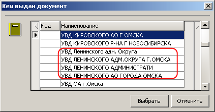 Рисунок – Пример дублирующих значений справочника «Кем выдан документ»