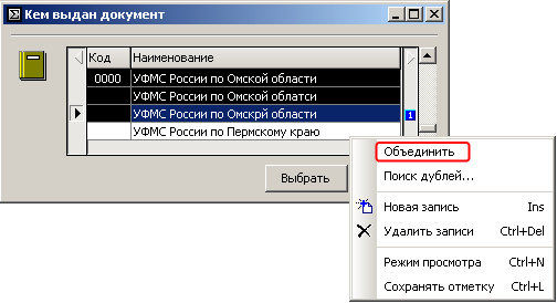 Рисунок – Пример объединения произвольных значений справочника «Кем выдан»