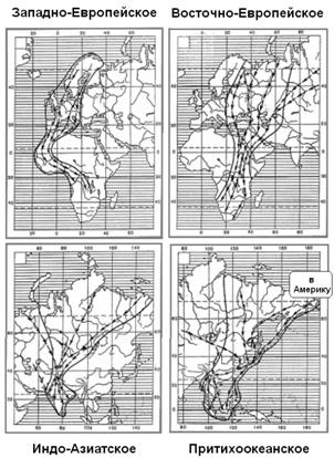 Рисунок 6. Основные миграционные русла птиц в Америке. | Рисунок 7. Основные миграционные русла птиц в Евразии–Африке. |