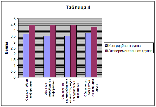 Третий этап формирующего эксперимента отражающий знания, умения и навыки в области психологии и культуры общения. | Средний балл экспериментальной группы -4,4 |