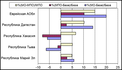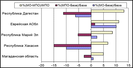 Субъект Российской Федерации | % (МО-База)/База | % (МПО-База)/База | % (МО-МПО)/МПО |
