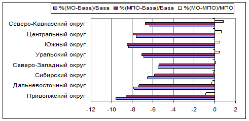 Федеральный округ | % закуп. цены (МО-База)/База | % закуп. цены (МПО-База)/База | % закуп. цены (МО-МПО)/МПО |