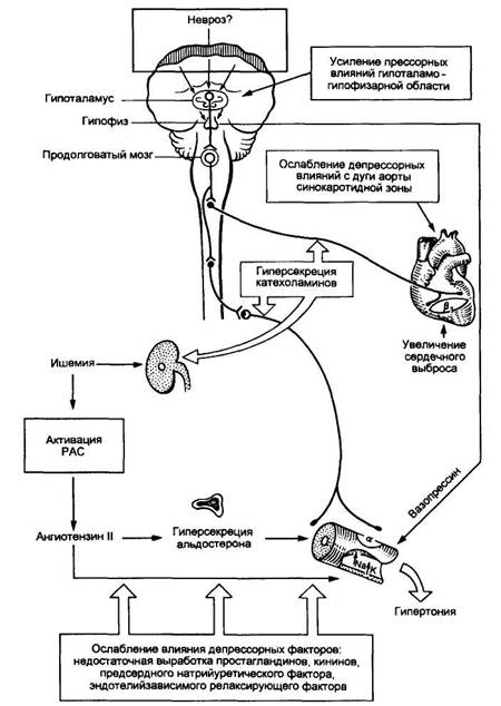 Рис. 3. Схематическое изображение патогенеза гипертонической болезни.