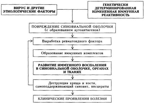 Схема 31. Патогенез ревматоидного артрита (серопозитивный вариант) |