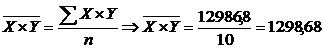 – среднее значение произведения величин используемых показателей;