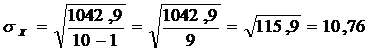 1.1 Рассчитаем среднеквадратическое отклонение величины Х