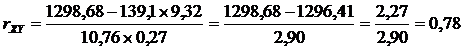 Коэффициент корреляции, rxy | Среднеквадратическое отклонение Х, sХ | Среднеквадратическое отклонение Y, sY | Ошибка коэффициента корреляции, Sr | Расчетное значение t-критерия, tr | Табличное значение t-критерия, tтаб |