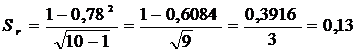 где Sr – среднеквадратическая ошибка выборочного коэффициента корреляции;
