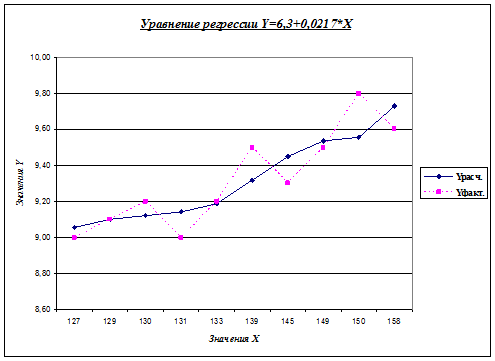 ) и расчетные значения Y, можно построить график.