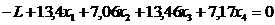 В результате в четвертой симплекс-таблице получили в строке –L все коэффициенты £ 0. Значит план оптимальный и задача решена.