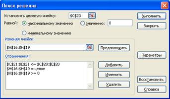 На регулируемые ячейки (искомые параметры – х1, х2, ..., хn) можно наложить дополнительные ограничения: неотрицательности и/или целочисленности, тогда решение ищется в области положительных и/или целых чисел.