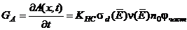 где GA — скорость генерации дополнительных неравновесных связей при образовании смещений; jчаст — плотность потока высокоэнергетических частиц.