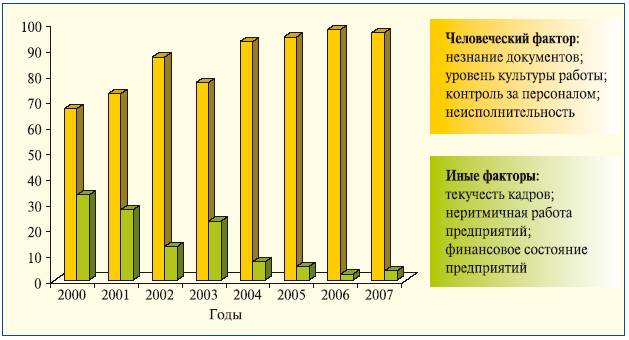 Рис. 2 Причины нарушений в работе радиационно-опасных объектов, обусловленных как человеческим, так и иными факторами[22]