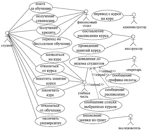 Надеемся, что и эта диаграмма не смогла поставить вас в тупик. Скорее всего, она описывает процесс управления учебными курсами (очевидно, путем создания их из готовых модулей) для некоего учебного центра. Как видите, все просто!