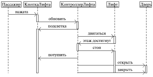 Поскольку текст предыдущего абзаца, может быть, не слишком хорошо воспринимается на слух, да и лучше, как известно, "один раз увидеть, чем сто раз услышать", приведем пример диаграммы последовательностей (рис. 12):