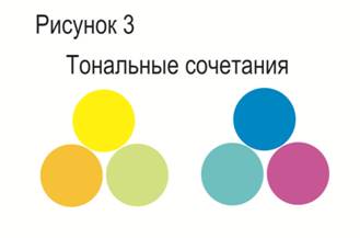 Тройка цветов угол+два соседних можно назвать цветовым тоном, другими словами, тон – это отношение цвета к его оттенкам. (Желтый тон, красный тон и т. д.). (Рис.3)