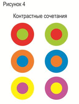 Контрастные цвета усиливают насыщенность друг друга, дают ощущение особой яркости цвета. (Рис 4)