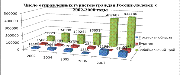 Существенно преобладает в Забайкальском крае выездной туризм и в сравнении с Иркутской областью и Бурятией его показатели выше в 3 раза.