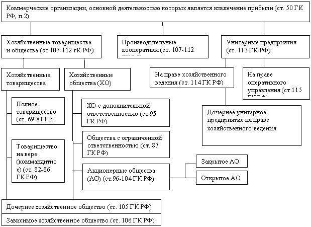 В соответствии с гражданским законодательством юридические лица в России подразделяются на коммерческие и некоммерческие организации. Основой для деятельности первых является извлечение прибыли. Вторые не ставят перед собой такой цели. Деятельность их в основном преследует благотворительные цели, не связанные с извлечением прибыли. К коммерческим организациям относятся хозяйственные общества и товарищества, государственные и муниципальные унитарные предприятия, производственные кооперативы. Некоммерческие организации - это фонды, учреждения, потребительские кооперативы, ассоциации.