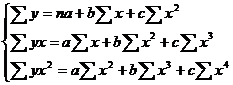 - количество периодов в динамическом ряду; х - порядковый номер периода; а - расчетный коэффициент; в и с - коэффициенты связи объемов потребления с календарным временем.