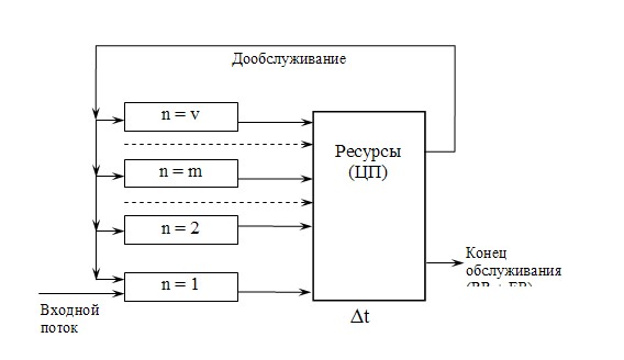 На рисунке 5 представлена схема алгоритма обслуживания с учетом ДО (RR и FB)