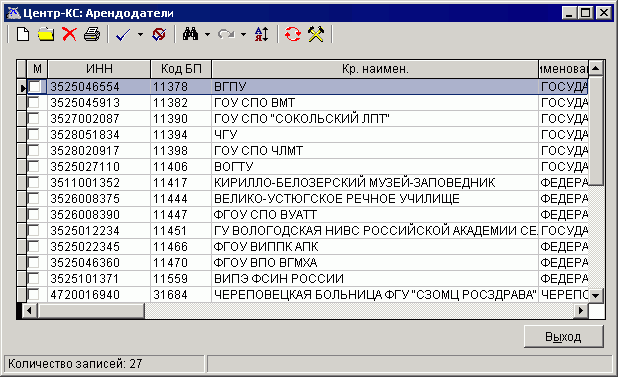 Рисунок 1. Списковая форма справочника «Арендодатели»