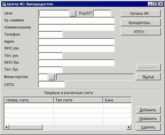 Рисунок 2. Форма ввода справочника «Арендодатели».