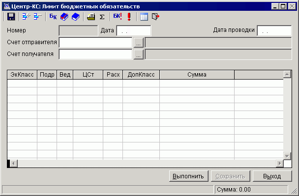 4.1.1 Форма ввода нового документа «Лимит бюджетных обязательств»