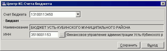 - поле «Счет бюджета» – указывается счет 40101, значение выбирается из справочника «Счета бюджета»;