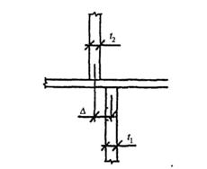 t=(t1+t2)/2, где t – толщина стены | Отклонение между осями колонн и стен | Не более t/30 или 8 мм |
